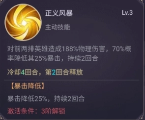 从品阶角度来说,米斯虽然比不上前面两位英雄,但单论属性他可一点都不逊色于他们俩。而且米斯的技能还带有控制效果,释放时不仅能对敌人造成高额暴击伤害,还有一定概率附加石化状态,让敌人一回合内无法行动。值得一提的是,这个石化效果的触发概率会随技能等级提升而增加,这能为友方输出创造更多机会,也提高了队友的生存几率。在战场上,米斯更偏向辅助定位,只要能好好辅佐队友,就能更轻松地拿下战斗胜利。