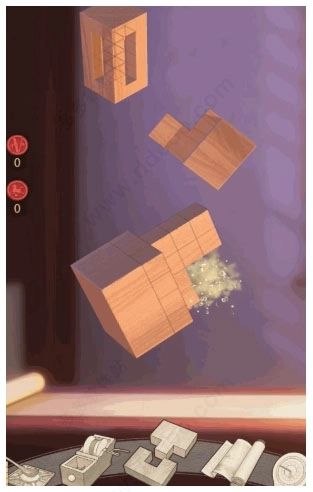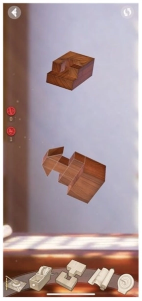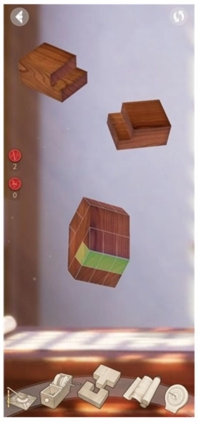 这一步考验玩家的空间想象力,既要思考卯结构B插入卯结构A后的形态,也要思考两者合并后存在的空缺部分是什么。