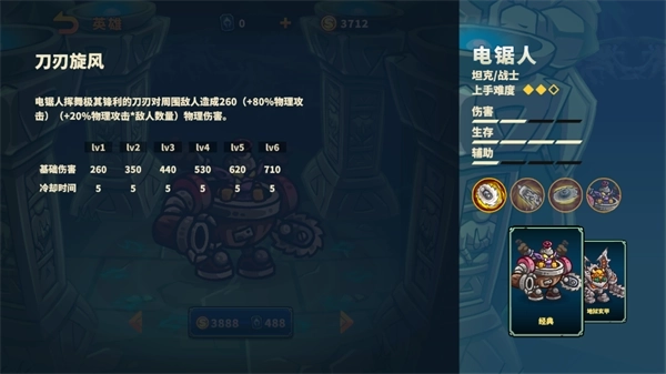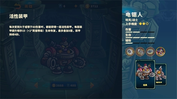 电锯人属于坦克/战士定位的英雄,不仅具备出色的生存能力,同时也拥有一定的输出能力。