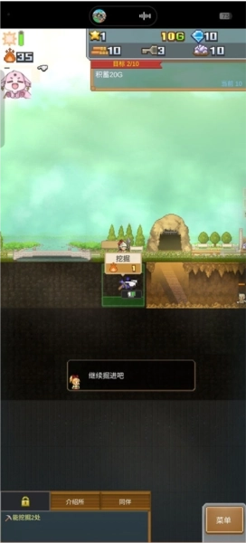 3、进入主界面后,首先可点击“挖掘”功能,着手开拓专属于自己的地下洞窟。