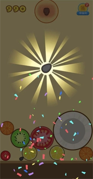 可以把橘子和柠檬尽量摆得近一些,柠檬和猕猴桃也挨在一起,这样游戏里只要有一个橘子就能快速合成。就算再出现一个柠檬也没关系,几个凑成一堆都是同样的逻辑!这么看的话,玩法还真有点像消消乐呢。
