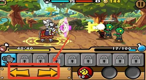 2、开始游戏后左边的左右按钮为控制角色前进方向。