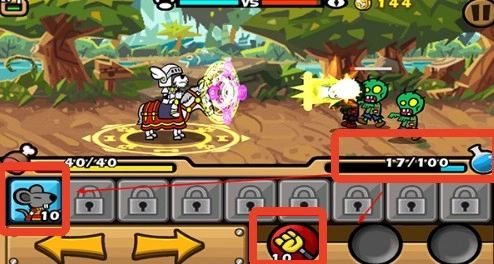 3、蓝色能量瓶可以召唤动物佣兵和魔法攻击。