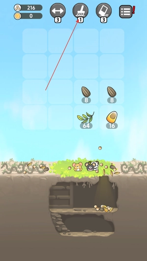 2、上下左右滑动屏幕,将相同的仓鼠或物品合并升级,积累饲料等核心资源,为乐园建设奠定基础。