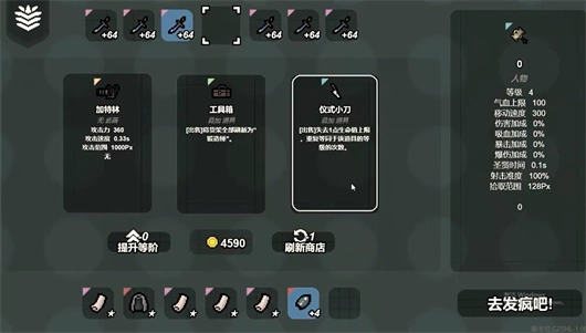 2、玩家幸存过后会得到金币,在商店内可通过金币来购买武器装备,提升自己的能力