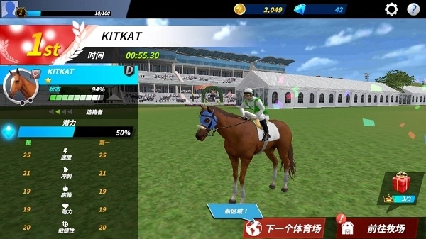 3、玩家能够借助训练以及装备升级来提高马匹在速度、冲刺、耐力、疾驰与敏捷度等多个维度的属性。