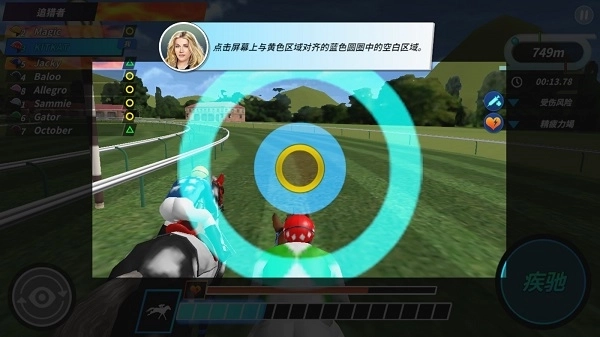 7、比赛进行到某个阶段时,你需要和马保持动作同步。此时,请点击屏幕上与黄色区域对齐的蓝色圆圈里的空白部分。