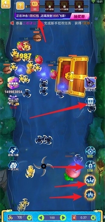 飞镖战记是飞行射击小游戏,有3次0.1提现机会。