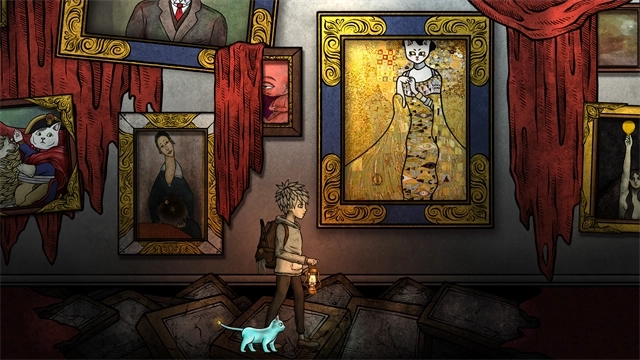 猫咪博物馆是一款2D横向冒险解谜游戏,它运用手绘水彩风格,画面在神秘之中隐隐透出诡异气息。低饱和度的色彩搭配空灵的背景音乐,共同营造出独特的氛围。尽管带有诡异感,但游戏几乎没有过于血腥的画面,也不存在突然出现的恐怖怪物或惊悚音效,整体给人一种平静自然的感觉。