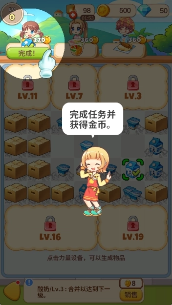 3、在合并过程持续推进的同时,玩家能够持续解锁新的物品、建筑、菜品等各类内容,拥有十分丰富的体验。