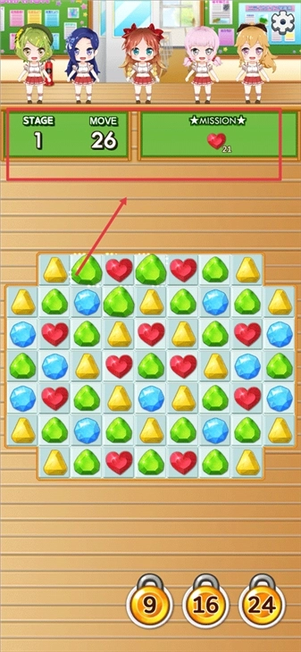 2、进入游戏后,界面上方的“move”显示的是游戏的移动步数,“mission”则代表游戏的过关目标。