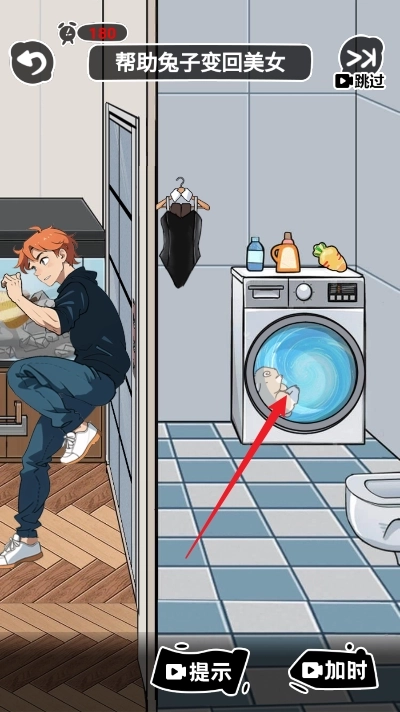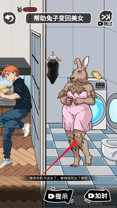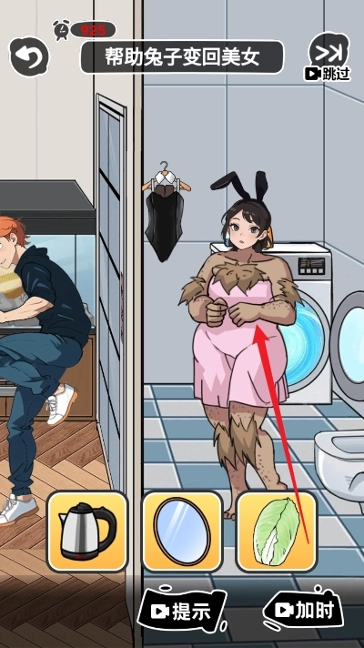 9、拖动墙上的衣服至兔人