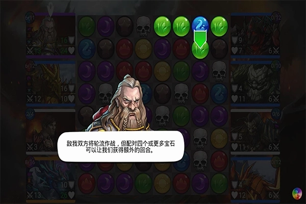 《战争宝石》是一款融合了解谜、角色扮演与策略等多元玩法的游戏。它以回合制三消为核心机制,玩家通过消除同色宝石来积累能量,当能量值蓄满时,便能释放角色的技能或装备进行攻击——这种设计将三消的趣味性与格斗的爽快感巧妙结合,要求玩家在每一步操作中都需思考策略才能克敌制胜。此外,游戏还加入了卡牌收集与升级系统,玩家可通过养成卡牌不断强化角色能力,让整体游戏体验更加丰富饱满。