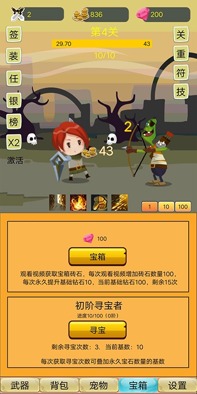 比如是10的话,一次寻宝可以找到10个宝石。