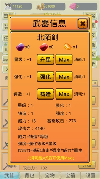 在对武器进行升星、强化、铸造这些操作时,需要消耗对应的宝石。