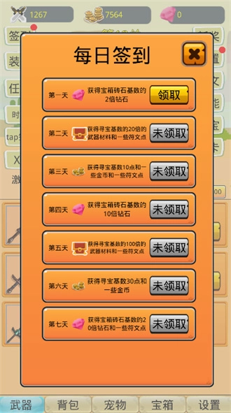 最关键的是签到,只要坚持签到,装备和钻石都会有的,千万别忘了签到!