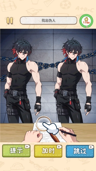点击放大镜工具,对场景当中的人物进行仔细的辨别,获得隐藏的线索,从而完成任务。