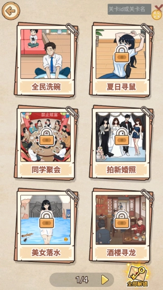 进入游戏后,第一步是挑选自己感兴趣的关卡,像全民洗碗、夏日寻鼠、同学聚会这类都可以。