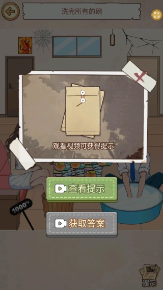 2、遇到关卡卡住时可以查看提示,但建议先自行思考物品的功能,例如在洗碗关卡中,不妨多尝试容器和水之间的关联。