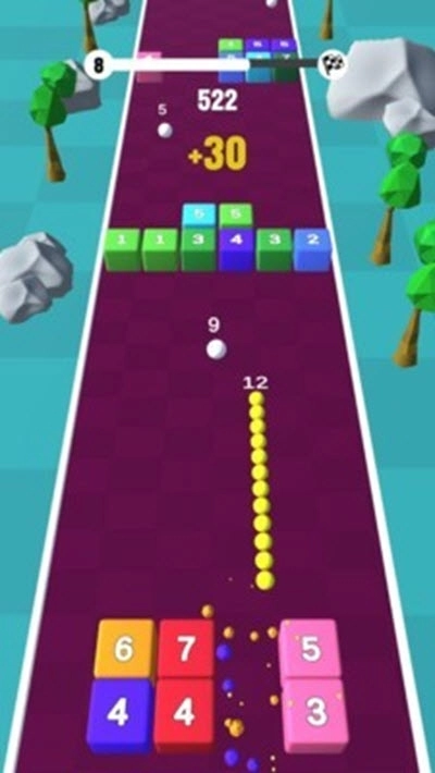 击碎方块,在前进的路上不断收集更多球球,尽量去撞击更多方块,争取拿到更高分数吧。