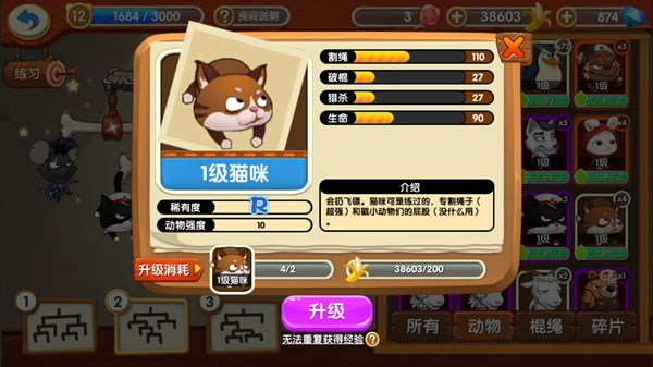 目前游戏里有二十多种动物、十多种棍绳,得依据动物和棍绳各自的特性,自由组合、挑选阵型来搭配,从而实现既出其不意又合理的效果。组合好阵容后进行匹配,战斗时还要根据对手的阵型选择最适合的打法,更得操控好每种动物的弹道,不然再好的动物和阵容也会功亏一篑哦