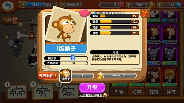 这只猴子是游戏的主角,它不仅会扔石头,砸棍子和对付动物的本领也十分高超。