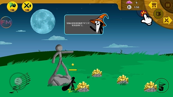 游戏刚开始的时候,我们手里只有矿工和棍棒手这两种兵种。矿工能靠挖矿石给我们赚经济,但得留意,矿工特别脆,还容易被敌人打,所以必须造些士兵来保护他们。