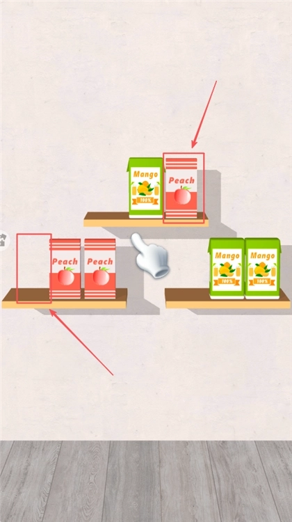 3、把橙子挪到下面来通关,熟悉基础操作步骤,搞懂游戏规则和通关要求,给后面更难的收纳任务打基础,学会技巧。