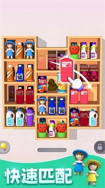 货柜收纳达人是一款主打轻松解压体验的休闲收纳游戏,玩家可通过点击拖拽的方式,把相同的物品进行分类整理、叠放消除,从而打造出整洁有序的货柜空间。这款游戏操作简单,很容易上手,不需要复杂的技巧,玩家只要仔细观察物品的形状和类别,将零食、文具、日用品这类同类物品移动到同一个区域,当叠放的数量满足指定要求时,物品就会自动消除,这样就能腾出更多的收纳空间。游戏还提供了多种主题场景和玩法模式,在经典模式里,随着关卡的不断推进,货柜的格子会逐渐增加,物品的类型也会变得更加丰富,从基础的小型物件到形状不规则的物品都有,十分考验玩家的分类逻辑能力。