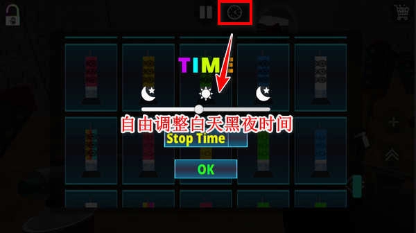 6、点击顶部的时钟图标,能够自由调节地图的昼夜时间,放烟花的最佳氛围自然是深夜时分!