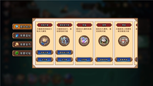 2、提升实力的方法有很多,建议优先选择能直接提高等级的途径。