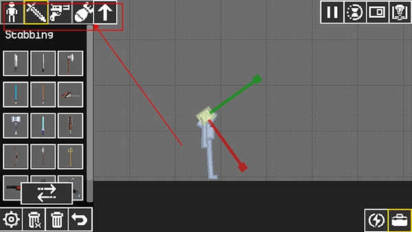 在左上方区域,你可以切换枪支、弹药、人物和兵器,并将它们放置到地图当中。