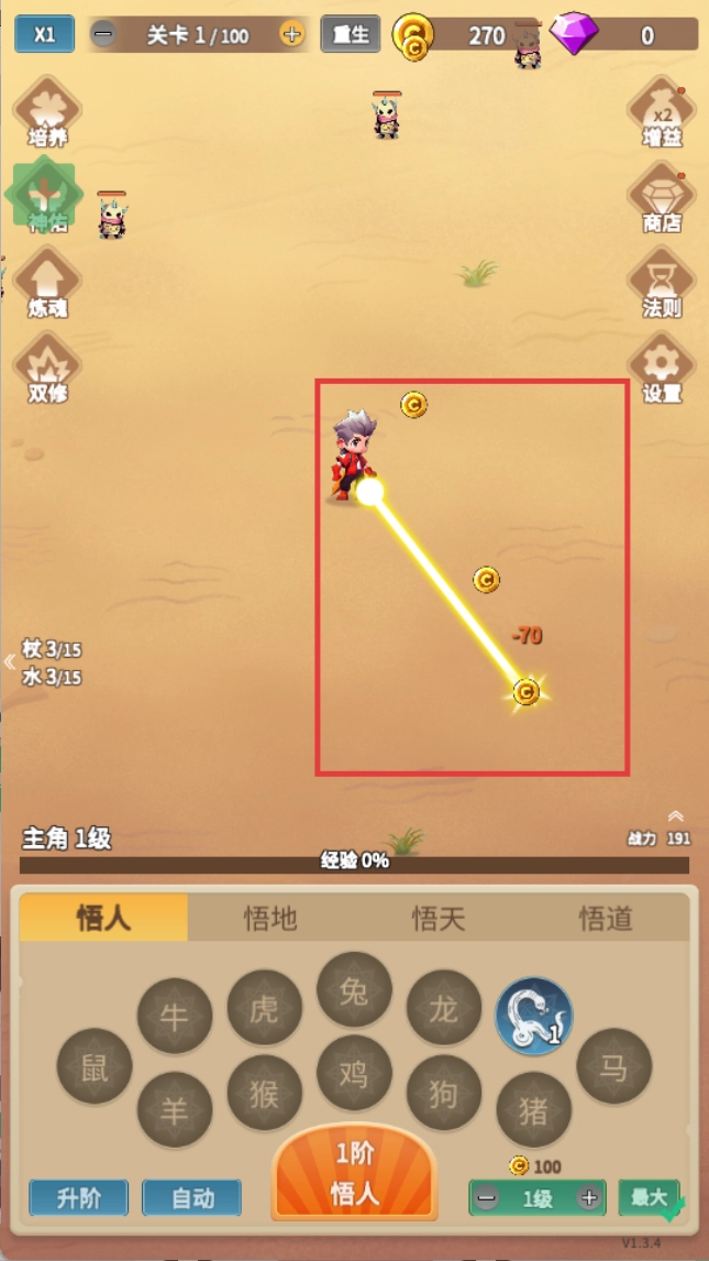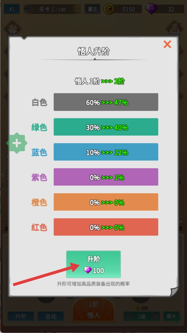 通过悟人升阶的方式,提高高品质装备的掉落概率,以此强化角色的整体实力,从而更顺利地推进关卡进度。