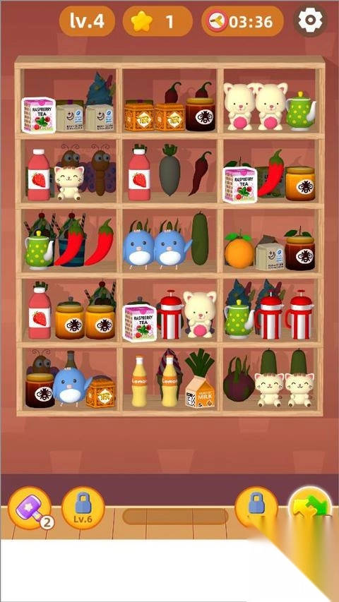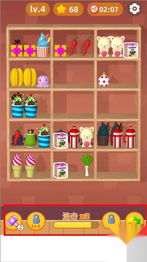 3、要留意部分货架已满时无法再放置物品,得加快速度把它们消除完毕。