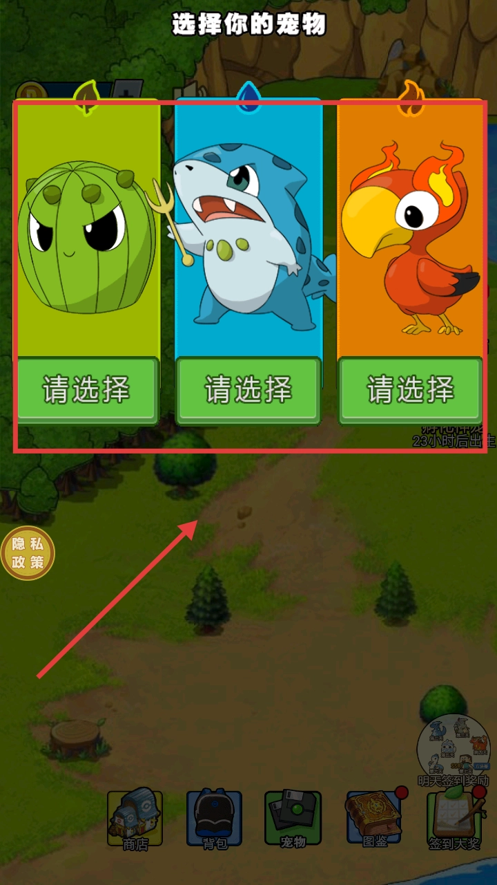 选喜欢的初始宠物(植物、鲨鱼、火鸟),点“请选择”确定~