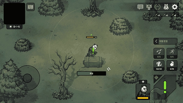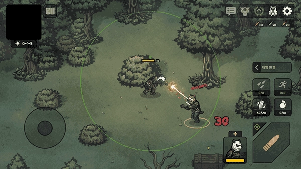1、后打开进入到游戏内后,通过左边轮盘控制移动方向,右边控制射击、拾取等操作