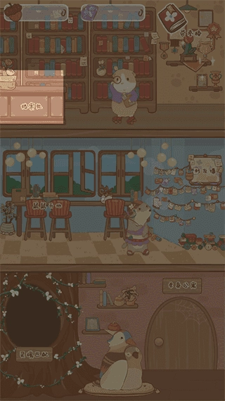 4、灰鼹鼠专注于房屋装修事宜,同时还会把花鼹鼠创作的作品带到集市进行交易,以此赚取货币并换回实用物品,为家庭的发展提供助力。