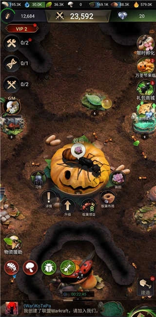工蚁的数量会直接影响蚜虫的生产效率,从而决定蜜露的产出量。若想增加工蚁数量,可通过建造工蚁孵化地来实现。工蚁孵化地最多能建造8个,之后就只能依靠升级来提高产能了。此外,水和肉这两种资源的总量也会对工蚁数量的增长产生影响。玩家可以在布局界面查看工蚁孵化地的具体位置,并且优先升级占地面积较小的建筑。