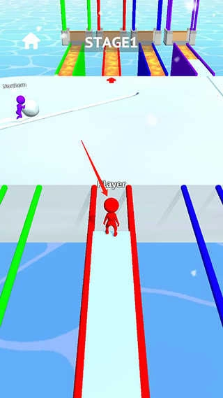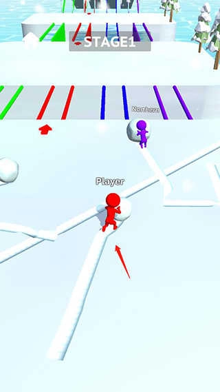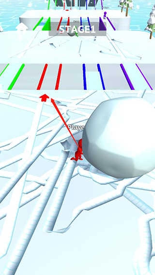 5、当雪球达到一定规模时,寻找与你颜色匹配的路径,并利用雪球铺路通过桥梁;