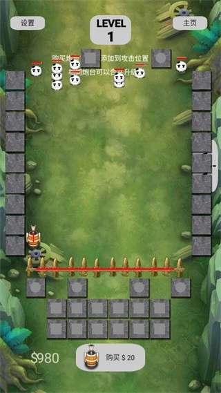 2、玩家点击底部的炮台购买,滑动屏幕可以移动炮台。