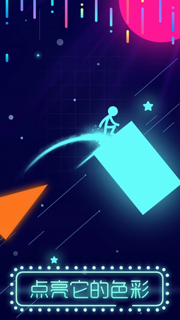 3、点亮它的彩色游戏是火柴人类型的快速跳跃和突破游戏。控制角色快速移动和前后跳跃点亮游戏世界中的各种灯光,