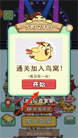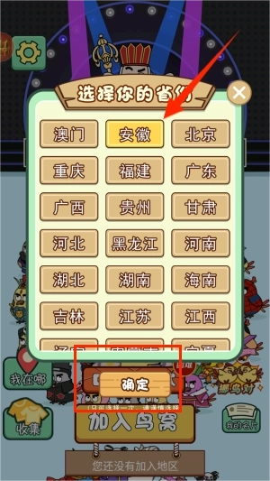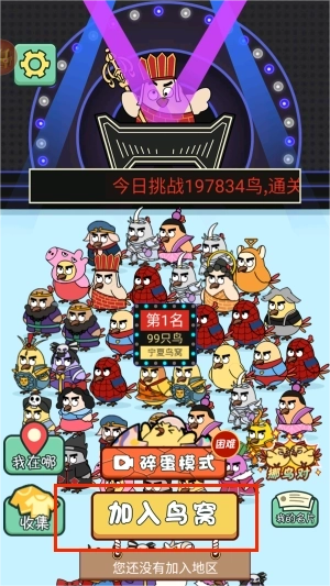 1、进入主界面后,点击"加入鸟窝"按钮,系统将跳转至地区选择页面。