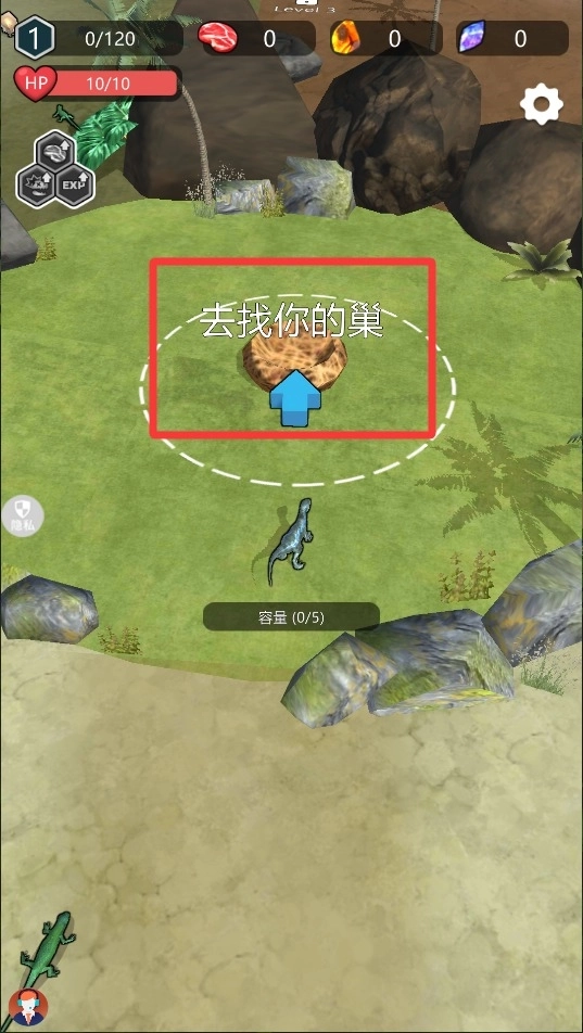 2、沿着地图标记寻找属于自己的栖息巢穴,这个安全据点可以用来恢复体力并储存收集到的生存物资。