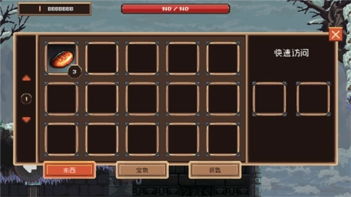 3、点击血条旁边的头盔会有背包栏和状态栏
