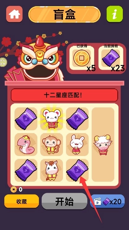 3、马上点击开始游戏按钮即可进入盲盒配对环节,系统会自动加载当前玩法的内容进程。