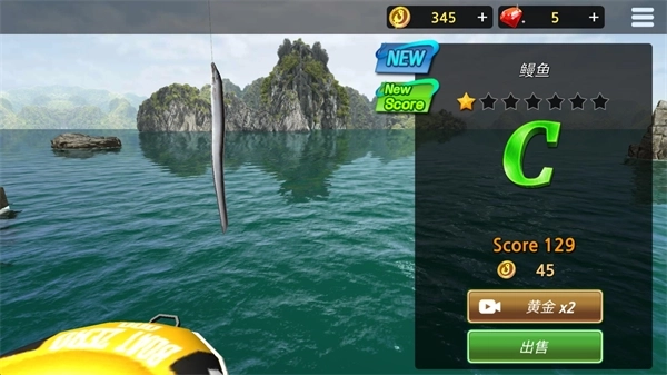 5、当鱼的血量变为零后就能成功钓到,钓到鱼之后你可以选择把它卖掉来获取金币。