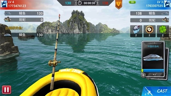 7、比赛开始后点击cast开始钓鱼,玩家钓到指定鱼类即可增加积分,时间结束时积分更高的玩家将获胜。