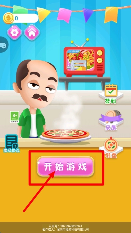 1.游戏启动入口:在主界面点击“开始游戏”按钮,就能正式开启披萨制作的流程,准备就绪后即可立刻感受亲手制作的乐趣。