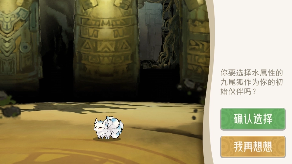 3、游戏刚开始时,我们需要从三种初始灵兽里挑选一只,它们的属性分别是水、草、火。