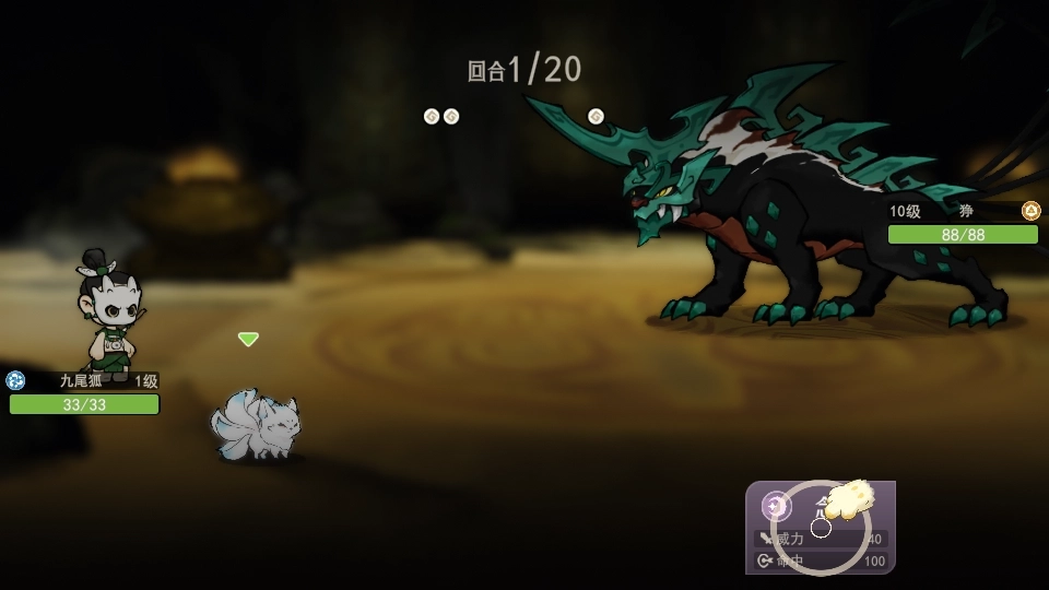 4、进入游戏的战斗教学环节,核心操作是挑选灵兽要施展的技能。